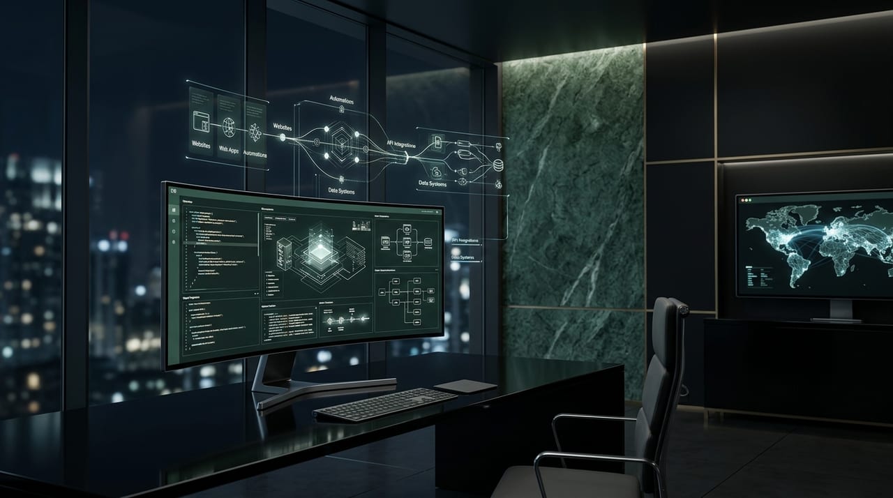 We work across websites, apps, automations, integrations, and data workflows — combining modern design with practical development thinking. The result is a cleaner, sharper, more useful digital layer for businesses that want to operate better and grow with stronger infrastructure.